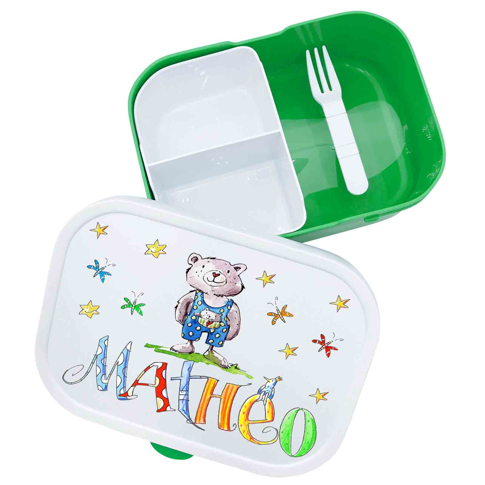mit herausnehmbaren Bento-Einsatz und Snackgabel