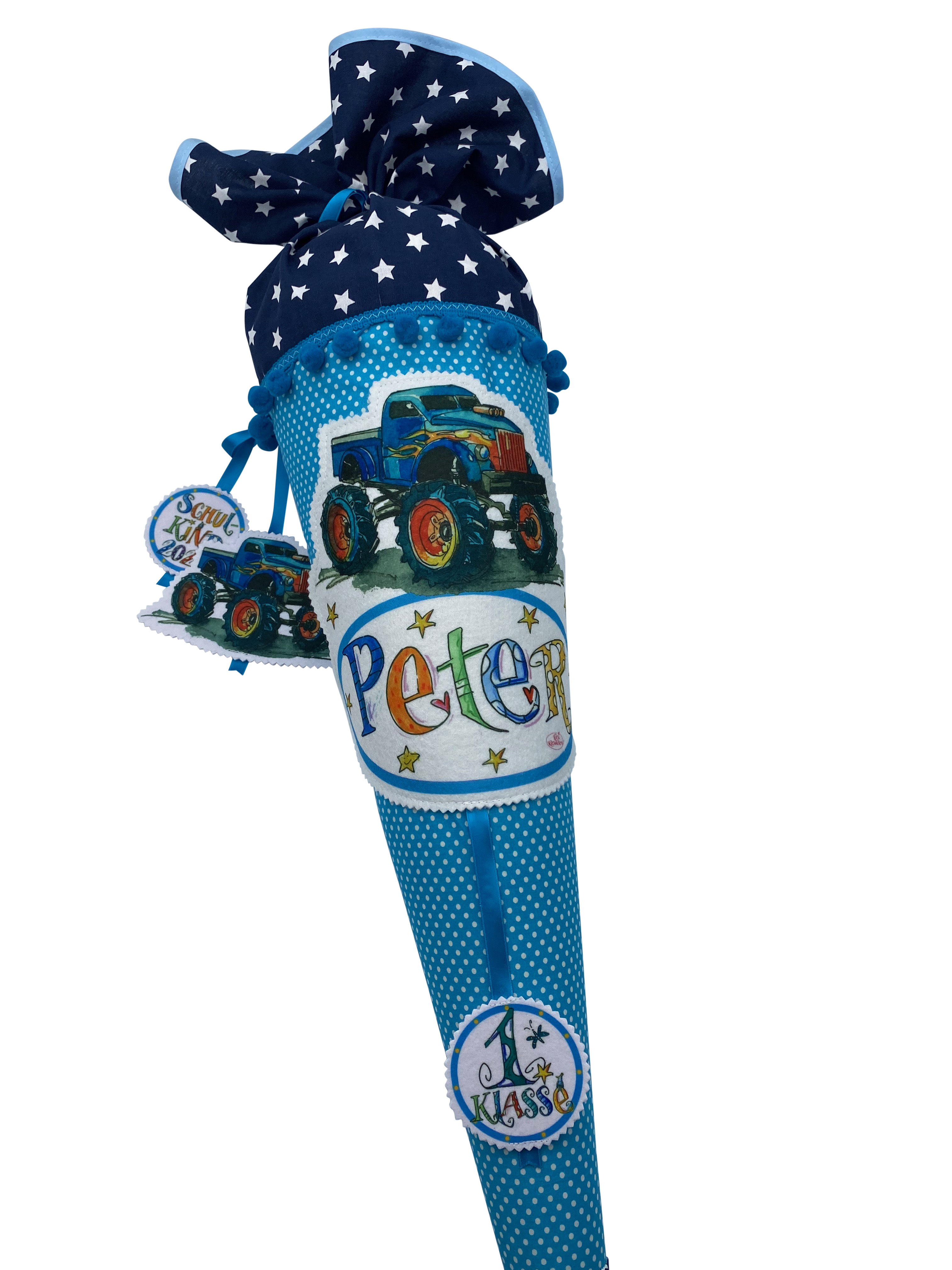Schultüte Monstertruck Dunkelblau Sterne Cyan