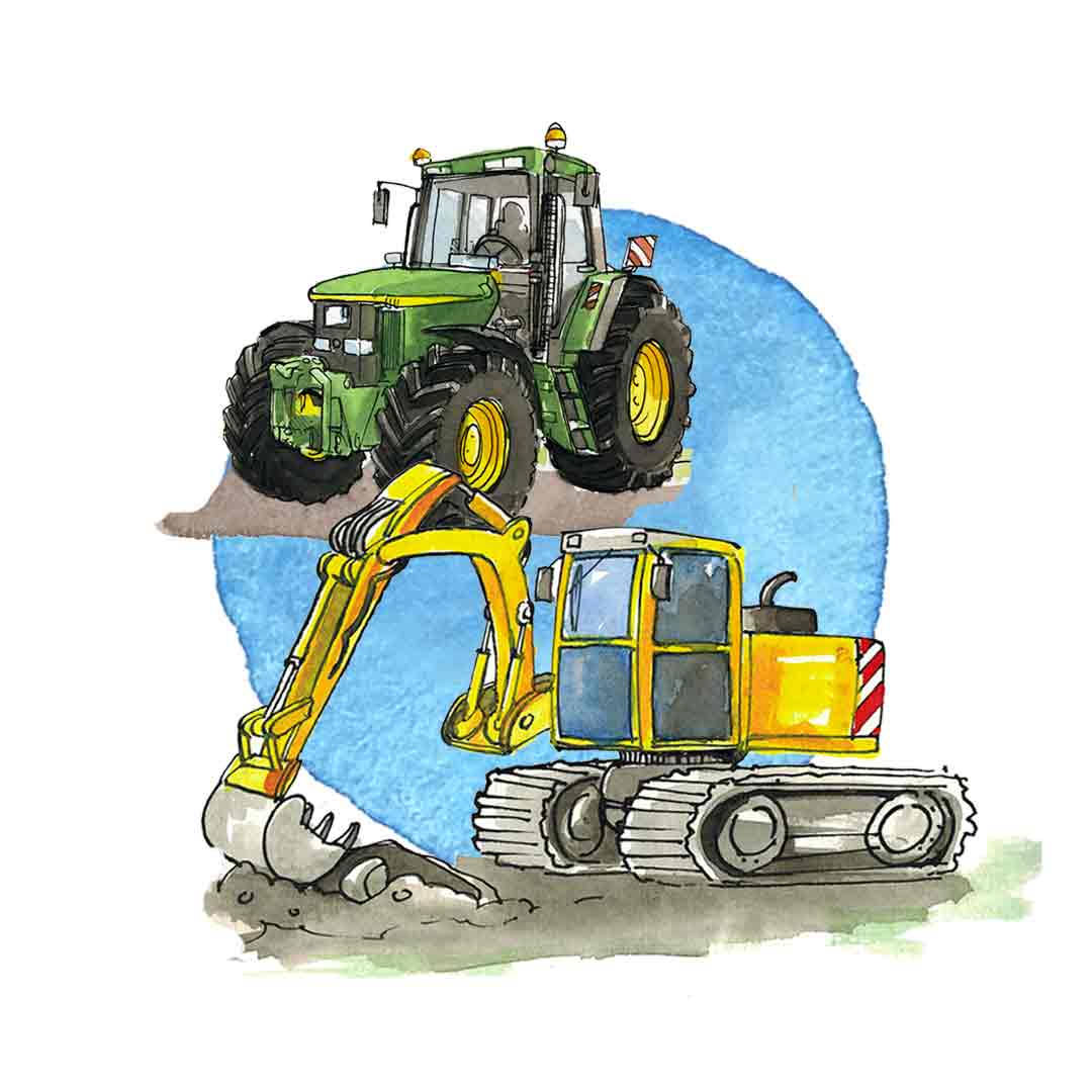 Kindertasse Bagger Trecker, Kunststoff, RosiRosinchen