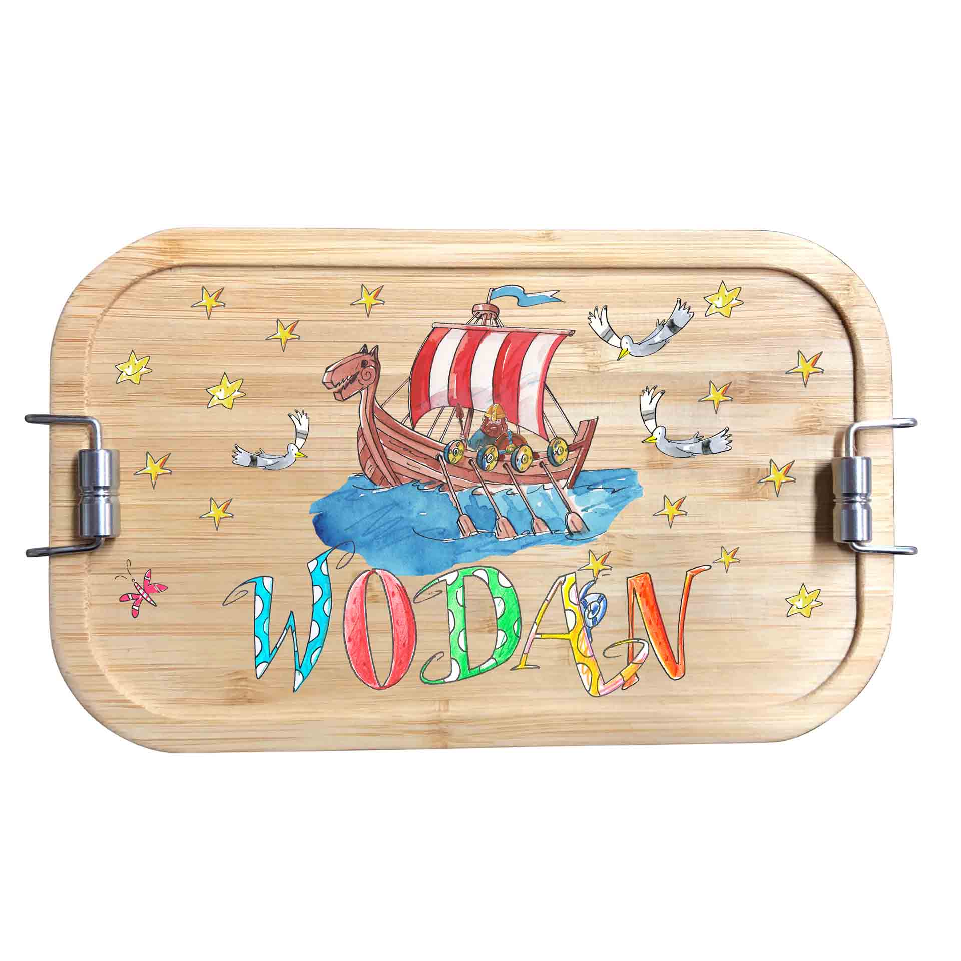 - Personalisierung: Namen des Kindes, der mit detailverliebten, illustrierten Buchstaben und niedlichen Motiven gestaltet wird.